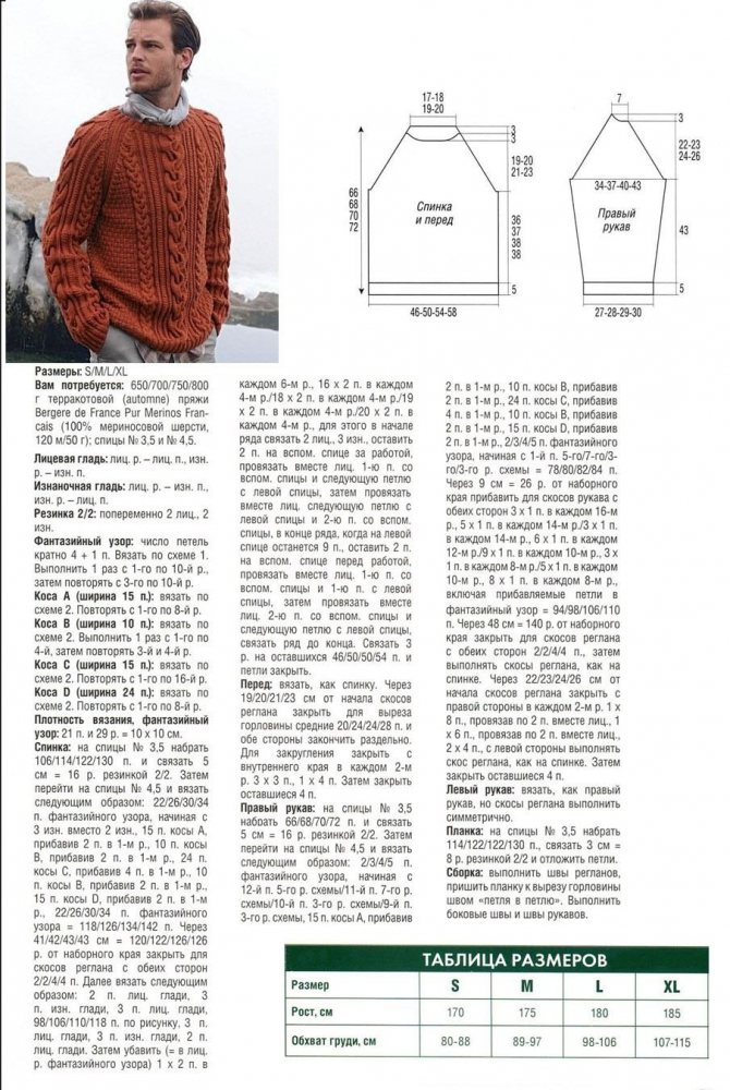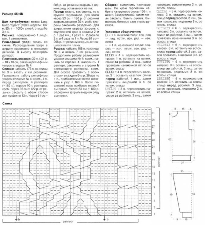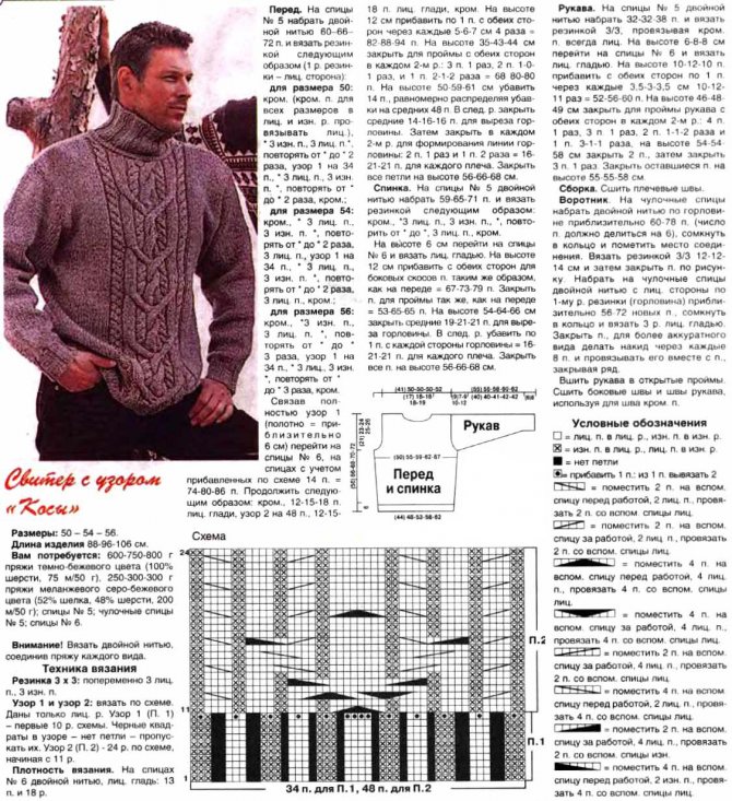 Схема мужского пуловера спицами