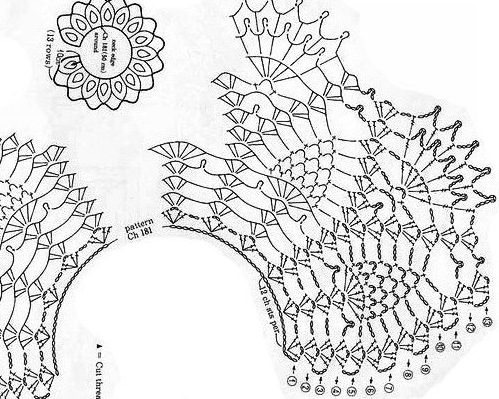 Ниже смотрите схему вязания воротничка с рисунком «Ананас»: