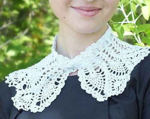 - Воротничок, связанный мамой или бабушкой, будет смотреться с особым шармом на школьной форме девочки. Аксессуар подойдет, как отдельная деталь гардероба для ношения на торжественные мероприятия.