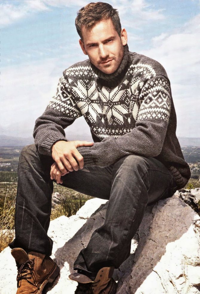 Существует несколько рекомендаций при выборе модели для вязания мужского пуловера спицами: