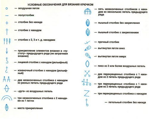 Чтобы разобраться в схеме вязания крючком, вначале необходимо выучить, как обозначаются петли на рисунках и потренироваться их вязать.