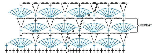 5 р.: *3 РС СН впереди, 1 РС СН позади, 1 РС СН удваиваем позади*, от * до * еще х 5 = 36 п..