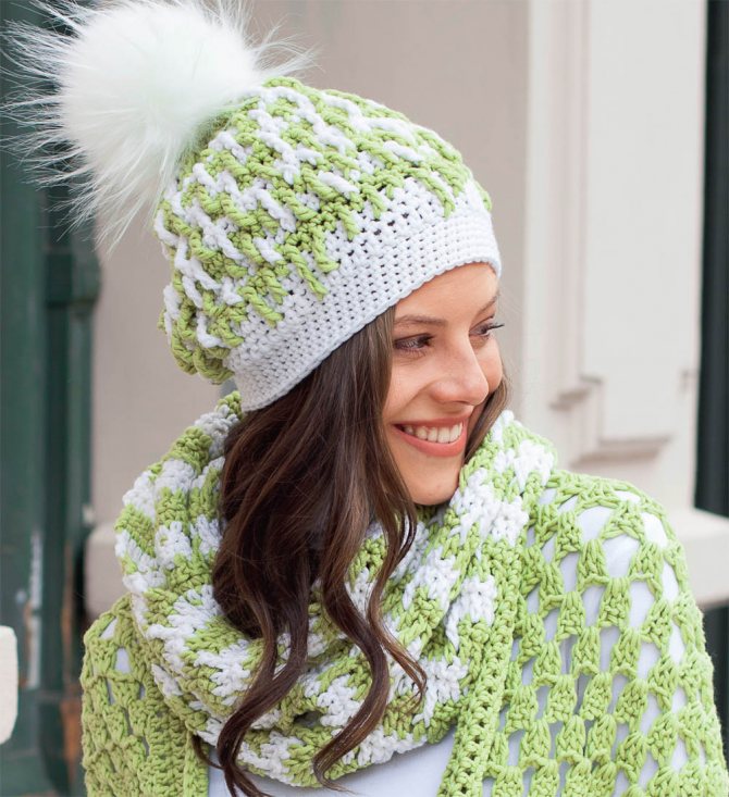 Многие девушки предпочитают самостоятельно вязать шапки. Таким образом можно получить аксессуар под любой наряд. А также обзавестись милым комплектом, связав еще и шарфик или модные перчатки.