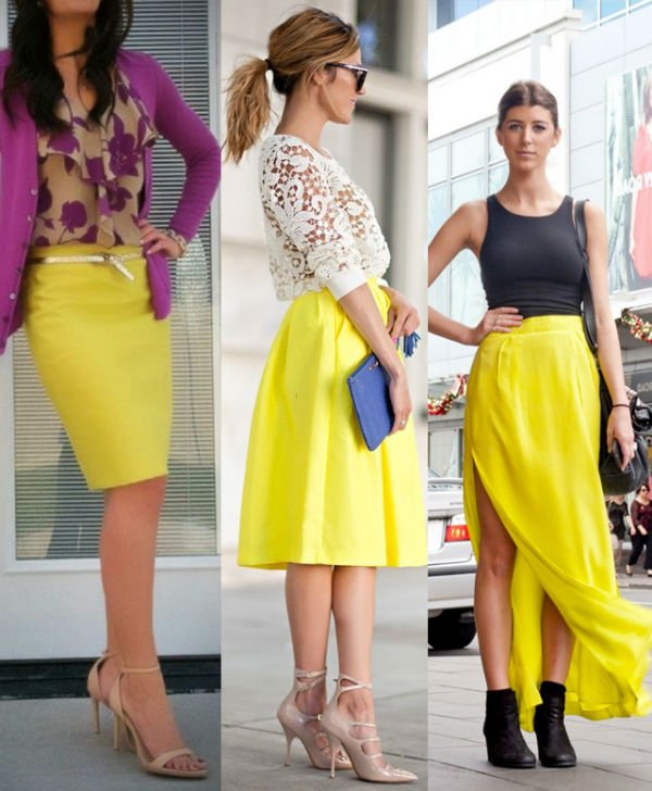 Если вы планируете приобрести желтую юбку, то вам не помешают знания в таком важном вопросе, как сочетание цветов.