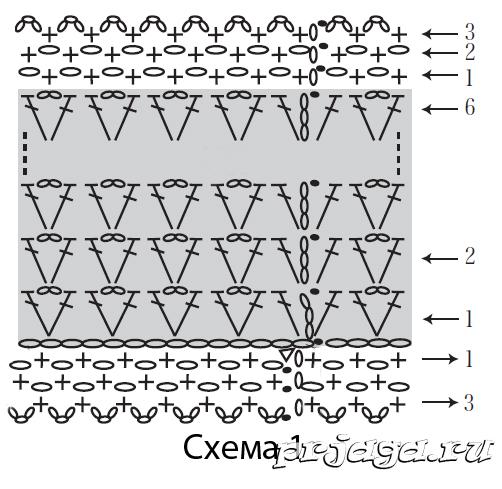 Столбики можно вязать с накидом, как у нас в МК, или же как на схеме с 2-мя накидами.
