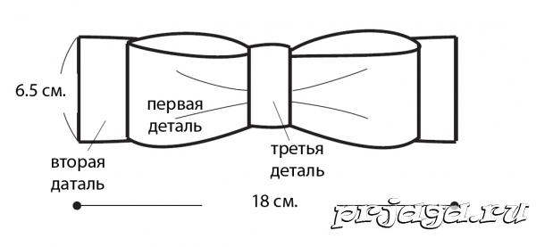 - Широкую деталь оборачивают узкой, замыкают перемычку в кольцо. В результате образуется бантик.