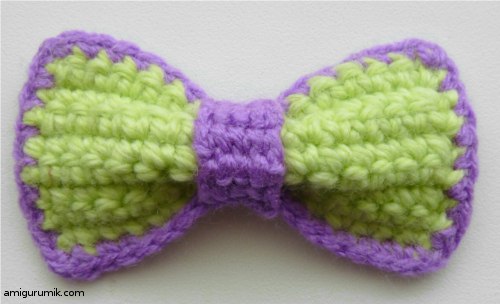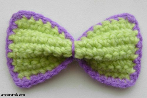 Этим японским термином называют небольшие вязаные игрушки, которые могут уместиться на ладони. Бант для амигуруми изготавливают по следующей инструкции для начинающих: