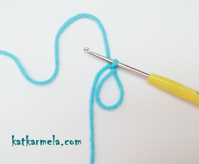 Сверните нить пряжи в кольцо амигуруми или затягивающийся узелок (как вам удобно).