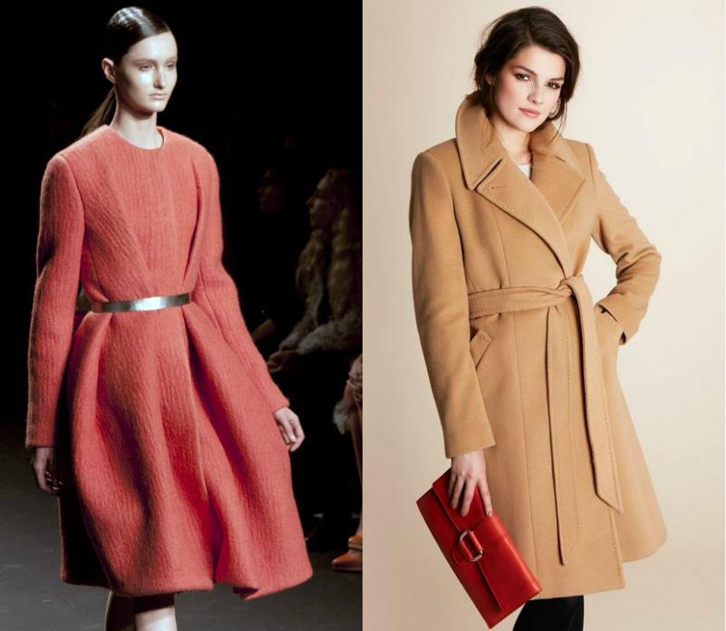 - Пальто. Оптимальными будут приталенные модели (например, пальто-халат или с ремешком) в классических цветах (черный, серый, бежевый). Лучше, если материал будет натуральным (замша, кашемир, твид или велюр). Если ваш рост невысокий, выбирайте модель до колена или чуть ниже. Для высоких девушек пальто в пол станет отличным выбором.