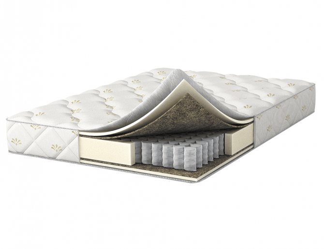 - Комбинированные спальные поверхности, когда жесткость, упругость и ортопедические свойства матраса регулируются за счет дополнительных наполнителей, например, латекса, биококоса, пенополиуретана, а также с помощью пружинных блоков (зависимых и независимых).