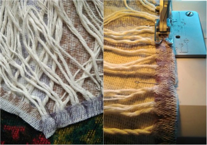 7. Прокладываю строчку на швейной машинке, пришивая бахрому к кокетке