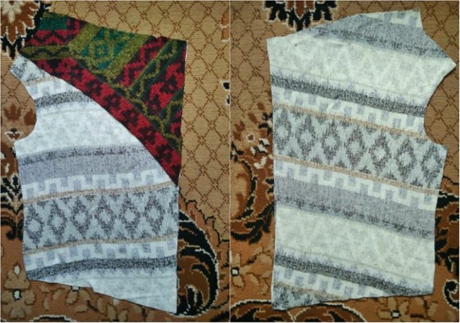 12. Соединяю выкройку удлиненного женского жилета по плечевым и боковым швам.