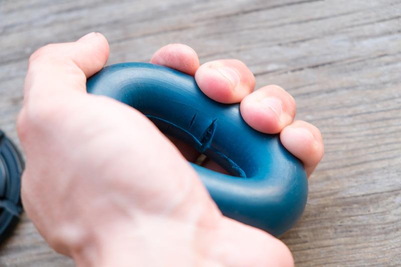 - Кольцевой эспандер — это самый распространенный вариант для тренировки кистей. Изготовленный из резины, он может иметь различную плотность, однако его сопротивление не поддается регулировке. Это самый бюджетный и доступный вариант: выбрав эспандер с нужной плотностью, вы сможете достичь желаемых результатов при регулярных занятиях даже в домашних условиях;