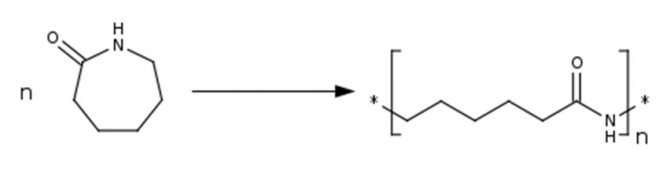 Далее по механизму «раскрытия цикла — присоединение» происходит гидролитическая полимеризация капролактама – синтез капрона.