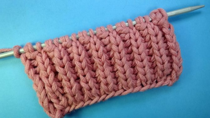- Резинка 1 на 1. Выполняется чередованием лицевых и изнаночных петель в ряду. Подойдет как начинающим, так и опытным рукодельницам.