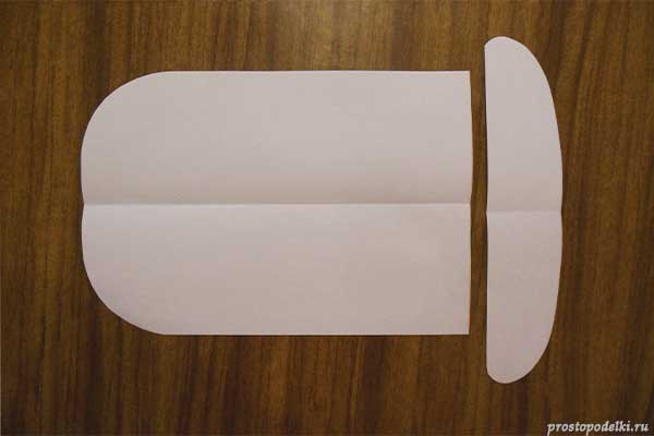- Прямоугольную форму согните по длине, соединяя узкие стороны, проглаживая середину.
