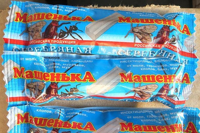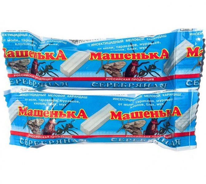 Есть много разных способов уничтожить этих вредителей, но с 90-х годов прошлого века простой в использовании мел «Машенька» доказал свою эффективность. Столь красивое название этого препарата вовсе не означает, что он неэффективен, напротив — он качественно достигает своей цели.