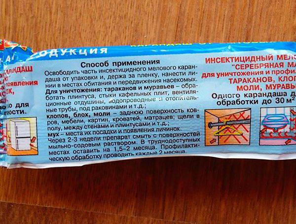Практика показала, что лучше задействовать мелок в борьбе с ползающими насекомыми, так как они постоянно перемещаются по поверхностям. Вероятность того, что вредители соприкоснутся с отравой, намного выше. Если необходимо вывести моль, блох или мух, карандаш лучше применять в качестве вспомогательной меры.