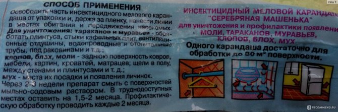 Ничего сложного в использовании Машеньки для борьбы с тараканами нет. Необходимо нанести полосы в тех местах, которые особенно часто посещаются тараканами: за холодильником, вокруг отопительных труб или приборов, у раковины, около мусорного ведра. Все необходимые места указаны на упаковке мелка.