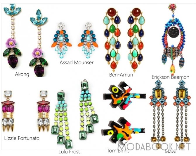 Завораживающий эффект колор блок с контрастными сочетаниями ярких цветов, приживается не только в одежде, но и в аксессуарах. Серьги с разноцветными камнями, драгоценными, полудрагоценными или простыми кристаллами – это отличное дополнение коктейльного образа или летнего стиля.
