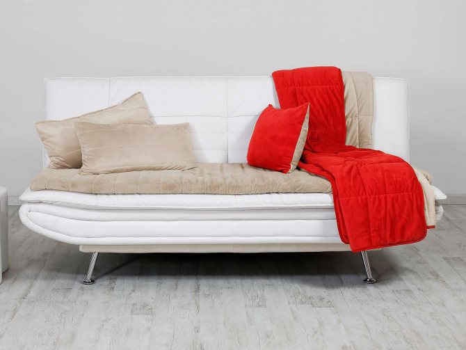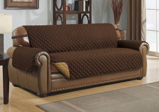 - Универсальная. По форме материал, напоминающий прямоугольное полотенце, которое просто накладывается поверх дивана. Она подходит как диванам, так и креслам.