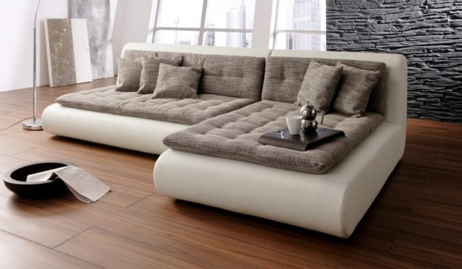 Такой вариант дизайнерской реставрации вашего дивана будет стоить до 1000 рублей. То есть, такая реставрация мягкой мебели состоит из мягких подушек на сидение, спинки и подлокотников, которые будут служить вам мини-столиком.