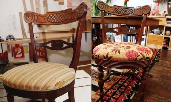 Вариант был один – поменять обивку. Вопрос только заключался в том, смогу я это сделать сам или нужно сдавать стулья специалистам. Осмотрев стул и оценив свои силы, я понял, что по-хорошему, вся работа по его обивке у меня займет несколько часов, при этом я никуда не буду спешить, а все действия буду выполнять очень аккуратно и тщательно. А набив руку на первых нескольких стульях, на оставшиеся потрачу совсем немного времени. Теперь осталось дело за малым – найти подходящую обивку.