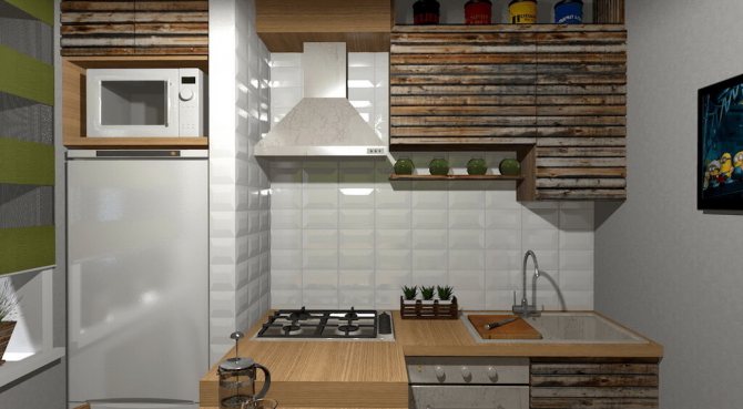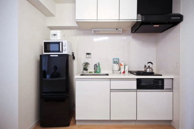 - в шкафу, например, для микроволновки и холодильника — главное, предусмотреть вентиляцию;