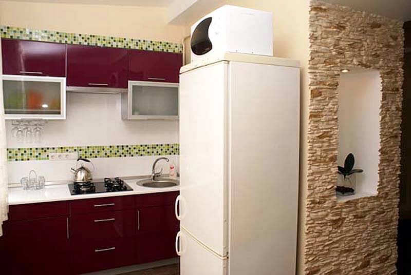 Елена, 24 года: Скажу честно, внешне мне идея поставить микро на холодильник очень не понравилась — отдает каким-то прошлым веком. Но поскольку у меня совсем небольшая студия, и живу одна, то маленького холодильника мне отлично хватает. А на нем и стоит печка. Конечно, со временем ко всему привыкаешь, но было бы у меня больше места, я бы переставила чисто из-за эстетических соображений.