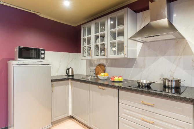 Часто люди пренебрегают этим правилом и устанавливают СВЧ в закрытые полки, а холодильник — в шкаф. Такой вариант допустим только в том случае, если обеспечить нормальную вентиляцию технике, например, на верхней или боковой полке просверлить отверстия.