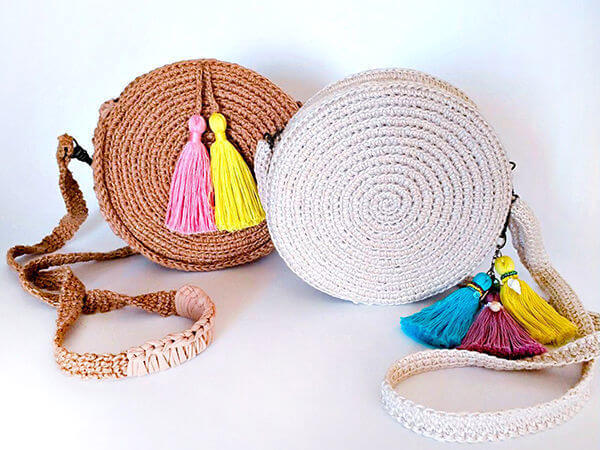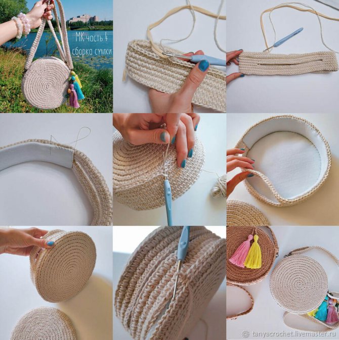 Круглая сумка из джута крючком – пошаговое описание работы