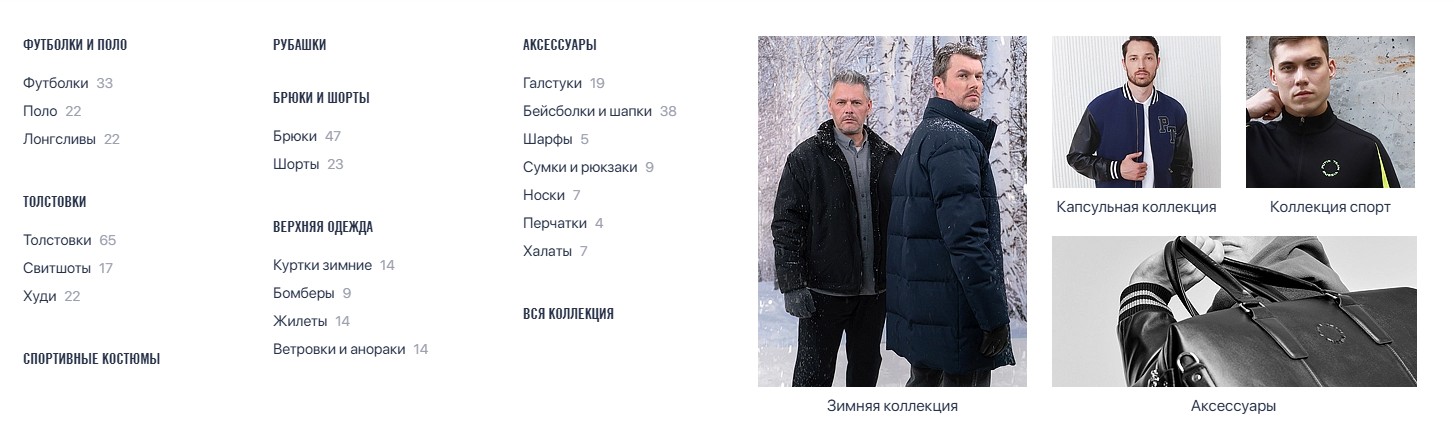 | Типы коллекций | Одежда: футболки, толстовки, кепки, спортивные костюмы. | Часто используются символы российской государственности, цитаты Путина, спортивная тематика. |