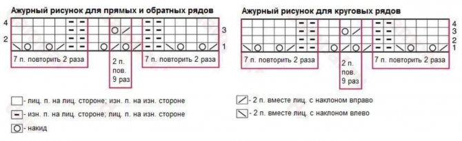 Сокращения в словах: лицевая – л., петля – п., изнаночная – изн., ряд – р.