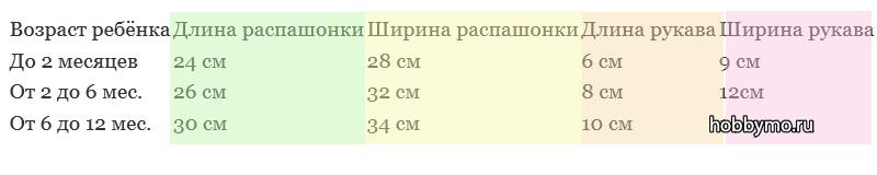Для Вашего удобства в таблице приведены примерные значения размеров по возрасту детей, чтобы можно было сшить распашонку и большего размера.