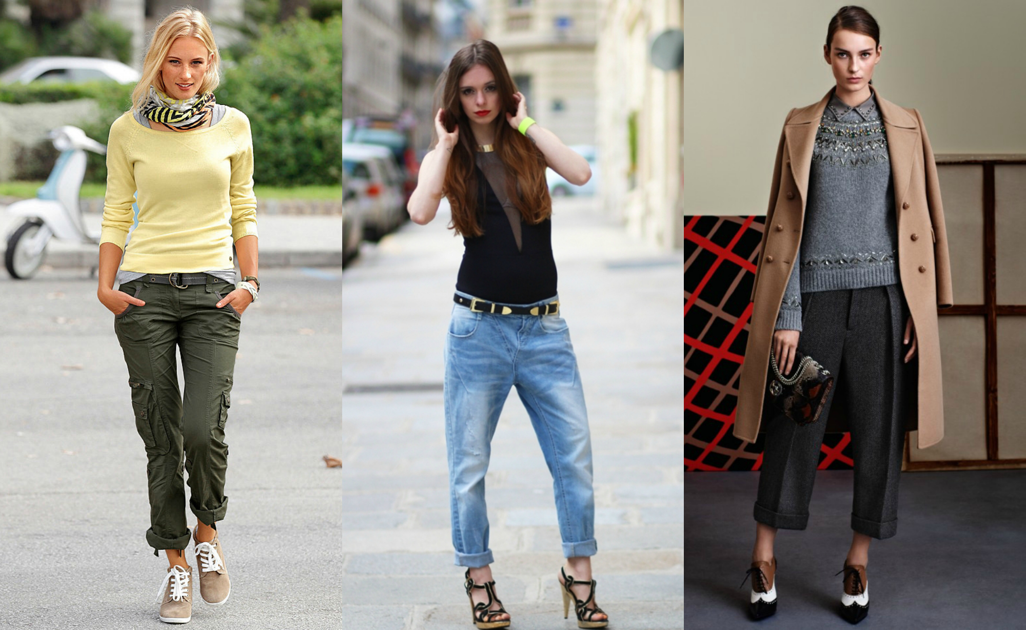 Для обладательниц фигуры типа “перевернутый треугольник” подойдут различные модели брюк и джинсов, но важно добавить объем в нижнюю часть туловища. В этом помогут: