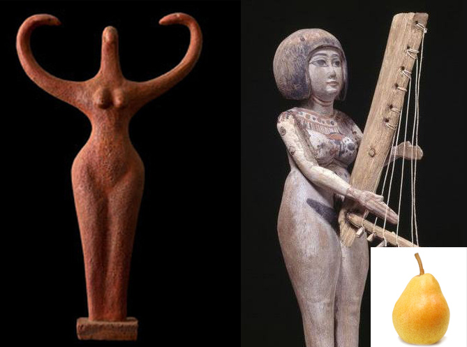 Силуэт “груша” можно смело назвать одним из самых женственных типов телосложения. В прошлом такая фигура считалась идеалом, а её обладательницы воспринимались как лучшие жены. Яркие примеры А-образных силуэтов можно увидеть на древнеегипетских статуэтках женщин и богинь, таких как богиня Нила Сатис.