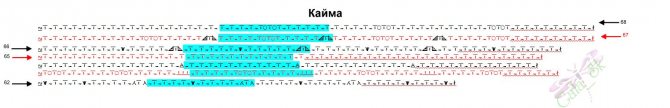 29 р.: КП, НК, 5 ЛП, 2 вместе ЛП, НК, 13 ЛП, НК, 2 вместе скрещенная, 5 ЛП, НК, КР
