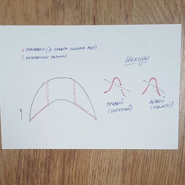 И все! Принцип вязания — это эти два ряда. В лицевых рядах делаем прибавки (в описании это накиды), в изнаночных рядах все вяжем по рисунку (или по узору, если будете его добавлять). Накиды можно вязать простой изнаночной (тогда на месте прибавки будет дырочка) или скрещенной петлей (тогда дырочки не будет).