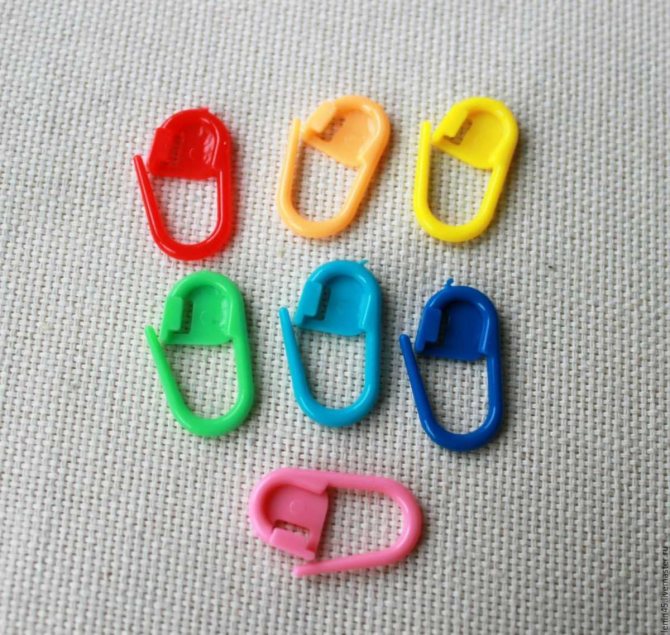 Что касается размера спиц, то потребуется три разных номера, с интервалом в пять мм. Желательно взять все спицы круговые, ведь в конце рукоделия на них будет более четырехсот петель, поэтому на ровных вязать трудно. Понадобятся также специальные маркеры или цветные скрепки, покрытые мягким пластиком.