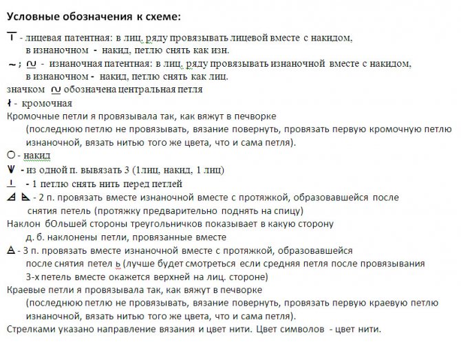 Некоторые журналы предлагают схемы для ажурной части и канвы – по готовности детали сшивают, от чего образуется шов, заметный при носке косынки. Такой вариант неприемлем, особенно на легких косынках, поэтому лучше не прибегать к сборным схемам вязки. Начинающим мастерицам проще будет ориентироваться при вязке изделия сверху, схему в таком случае можно просто перевернуть.
